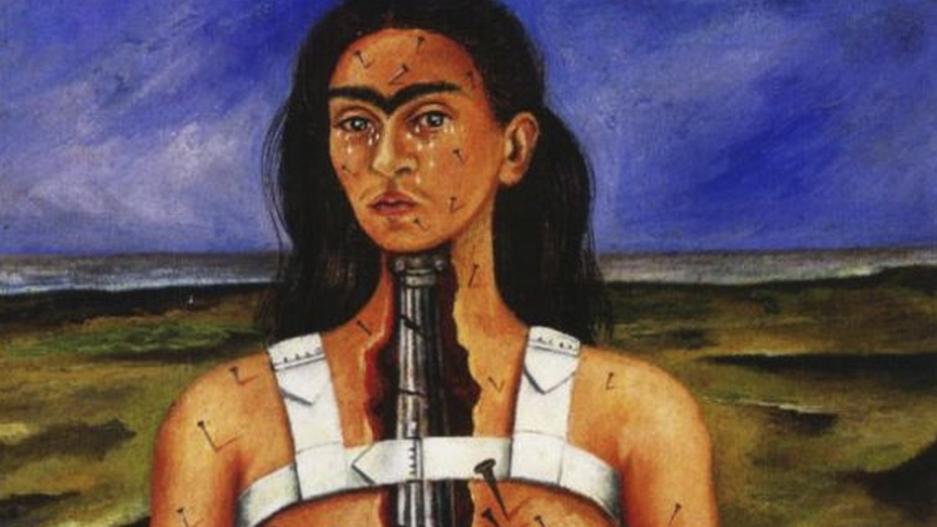Sütunun Yıkılması: Antik mitolojide sütun, kozmosun düzenini ve ruhsal dengenin sembolüdür. Frida’nın sütununun kırılması, evrensel dengenin kendi bedeninde yıkıldığını ifade eder.